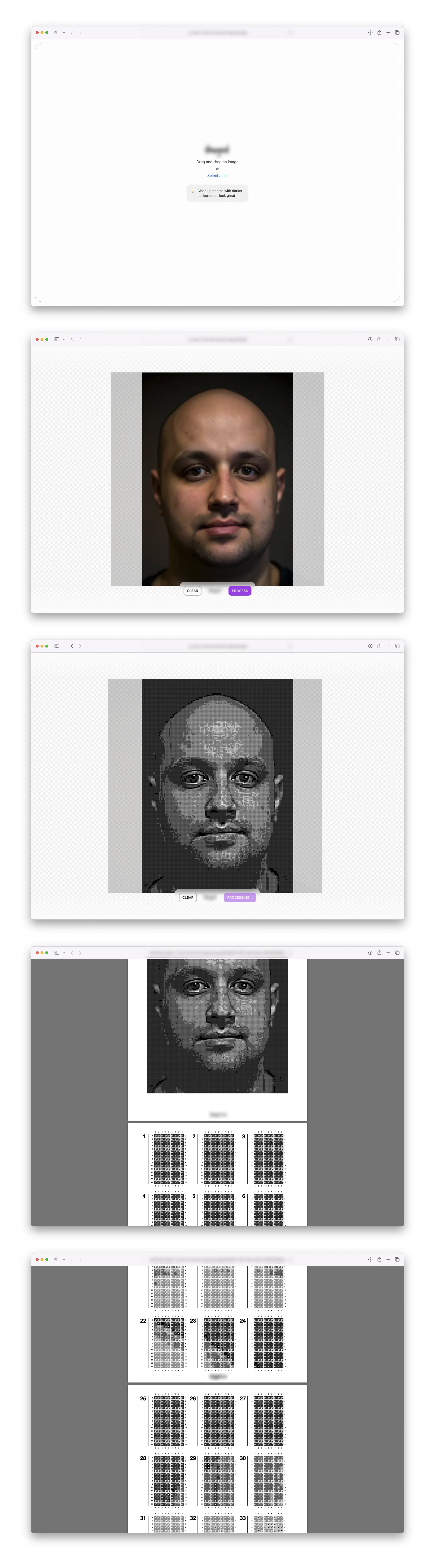 Within a few hours, we had a working prototype that could process images and output a diamond art pattern using five grayscale colors.