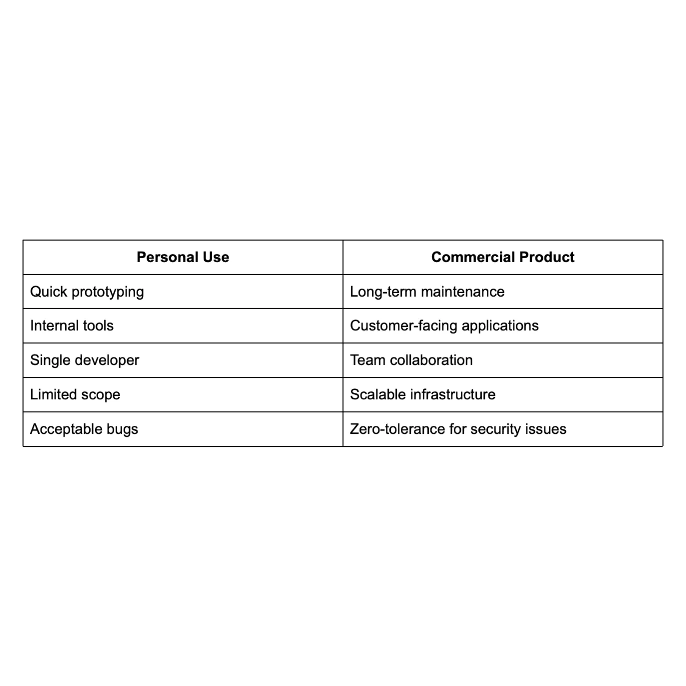 As AI tools improve, the boundaries between vibe-coding and commercial development will blur. Future AI may address many current limitations, particularly around security and performance optimization.
